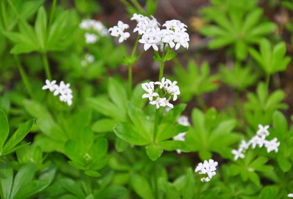 Sweet woodruff, with its whorls of emerald green leaves and white starry flowers, is a welcome sweet woodruff grows to about a foot tall and spreads indefinitely by stringy yellow underground.